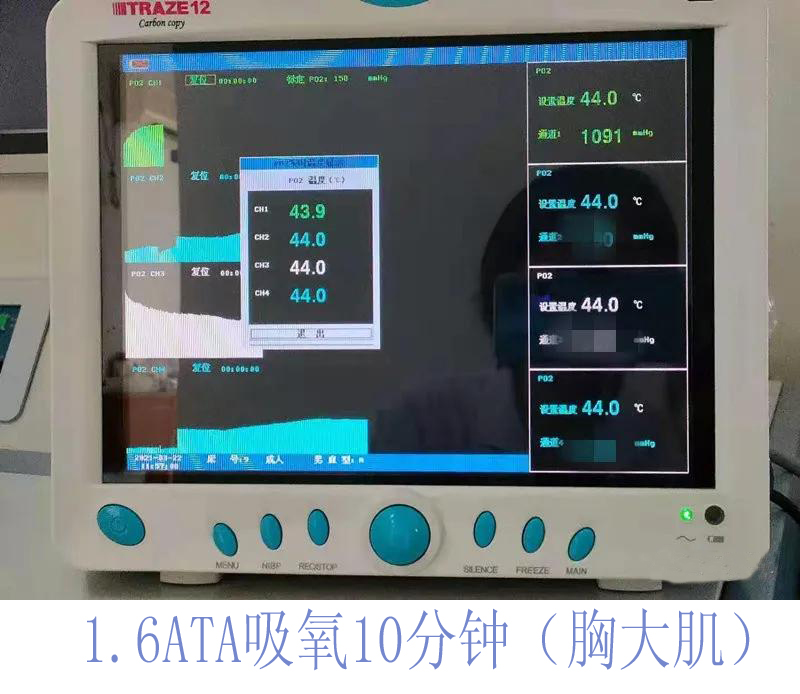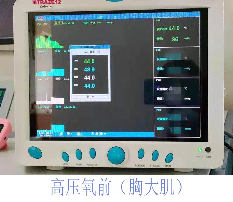 5.1 高壓氧治療的核心是能夠增加組織的氧分壓及氧含量,傳統(tǒng)的血氧飽和度監(jiān)測(cè)在高壓氧狀態(tài)下沒(méi)有實(shí)際價(jià)值,瞬間就可以達(dá)到100%飽和,隨著高壓氧治療的深入,無(wú)法體現(xiàn)出高壓氧狀態(tài)下組織氧分壓的提高。經(jīng)皮氧分壓測(cè)定則不同,可以實(shí)時(shí)監(jiān)測(cè)到高壓氧治療過(guò)程中,任何時(shí)間節(jié)點(diǎn)組織氧分壓的準(zhǔn)確數(shù)值,可以間接反映出“吸氧通路”是否通順?面罩佩戴是否嚴(yán)密?如果吸氧過(guò)程中組織氧分壓不能達(dá)到預(yù)期值,可能會(huì)影響到療效。